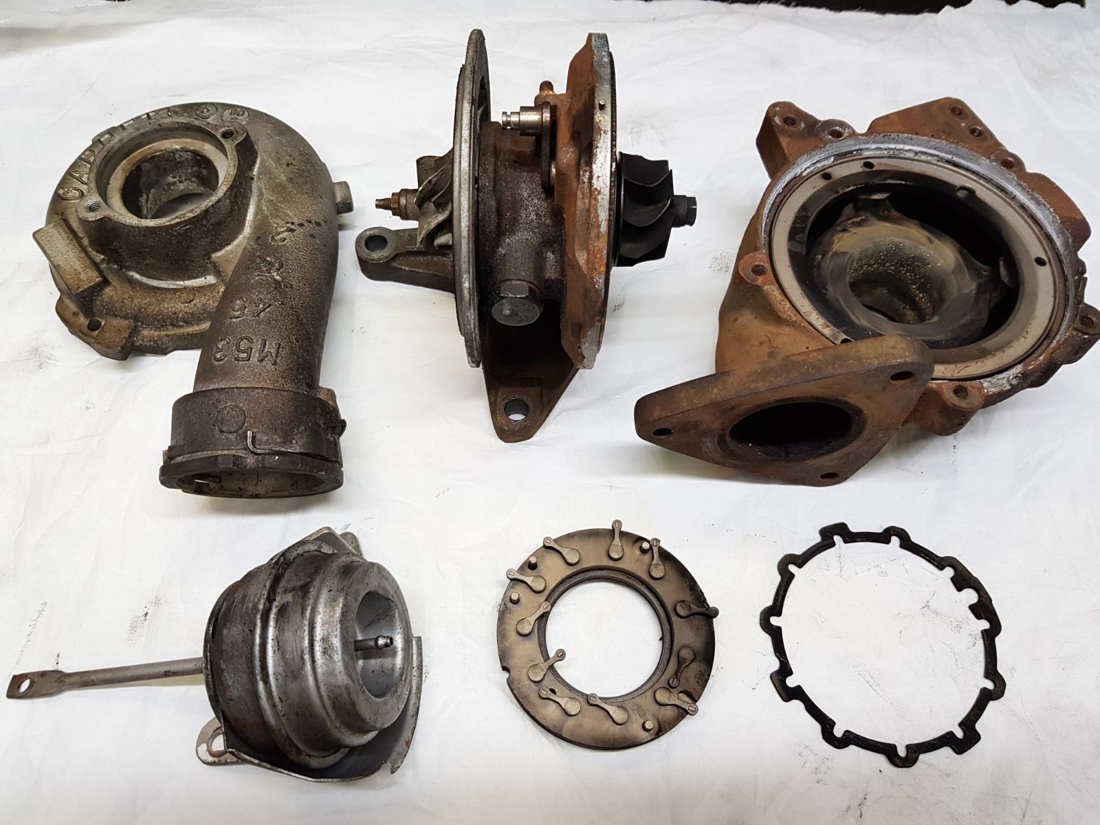 Когда мы получаем турбокомпрессор, нуждающийся в ремонте, процесс начинается с обязательной проверки. Мы проверяем, все ли компоненты соответствуют типу турбокомпрессора, анализируем общее состояние и возможность применения в будущем и тщательно разбираем. Все детали, которые имеют любой неисправимый износ, повреждение, коррозию, загрязнение или трещины, которые не совместимы с нормальной работой, выбрасываются.